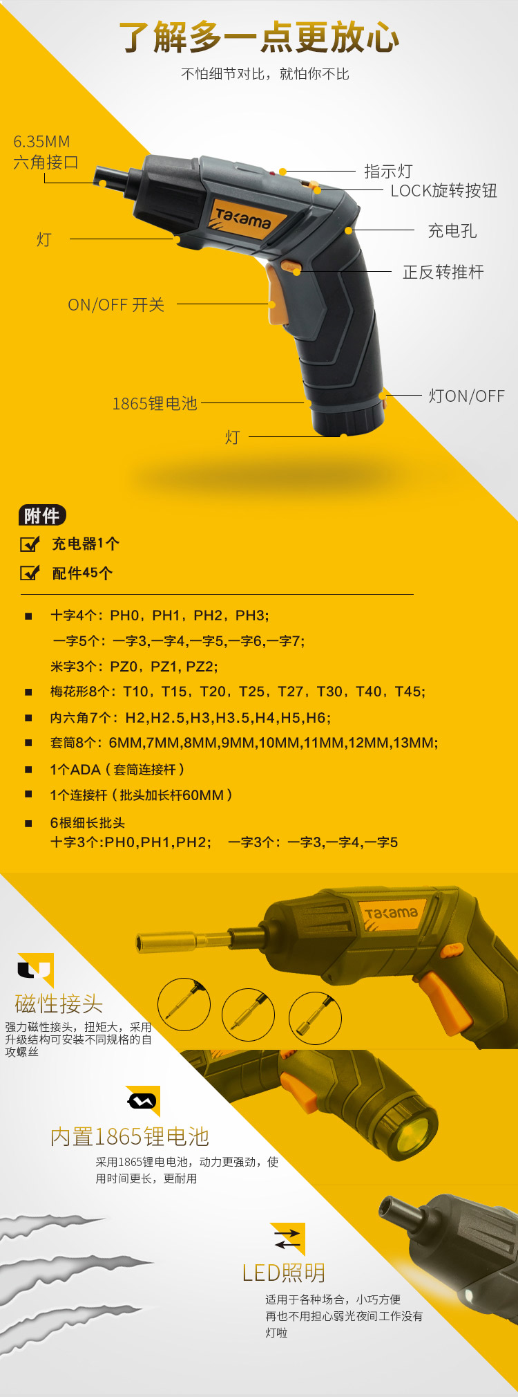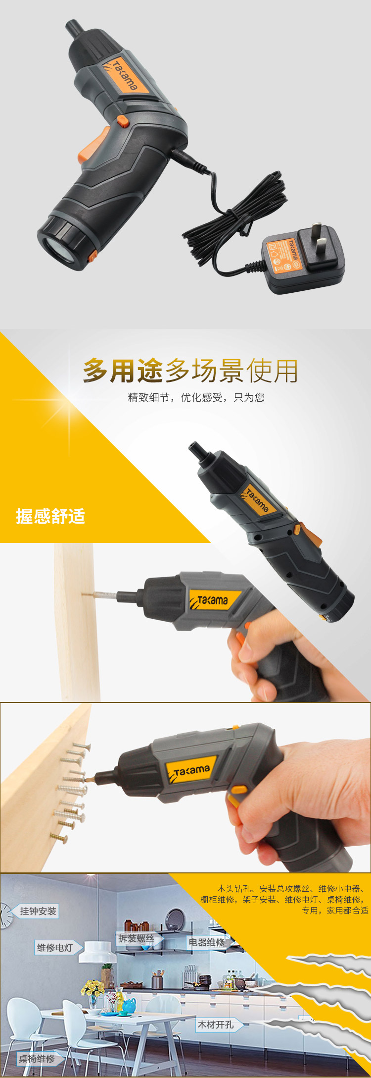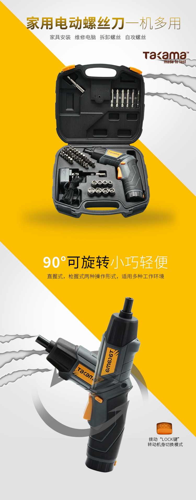 takama(高松)801004 4V电动螺丝刀电钻电起子 家用充电螺丝刀锂电起子机套装可旋转变形电动工具 4V电动螺丝刀