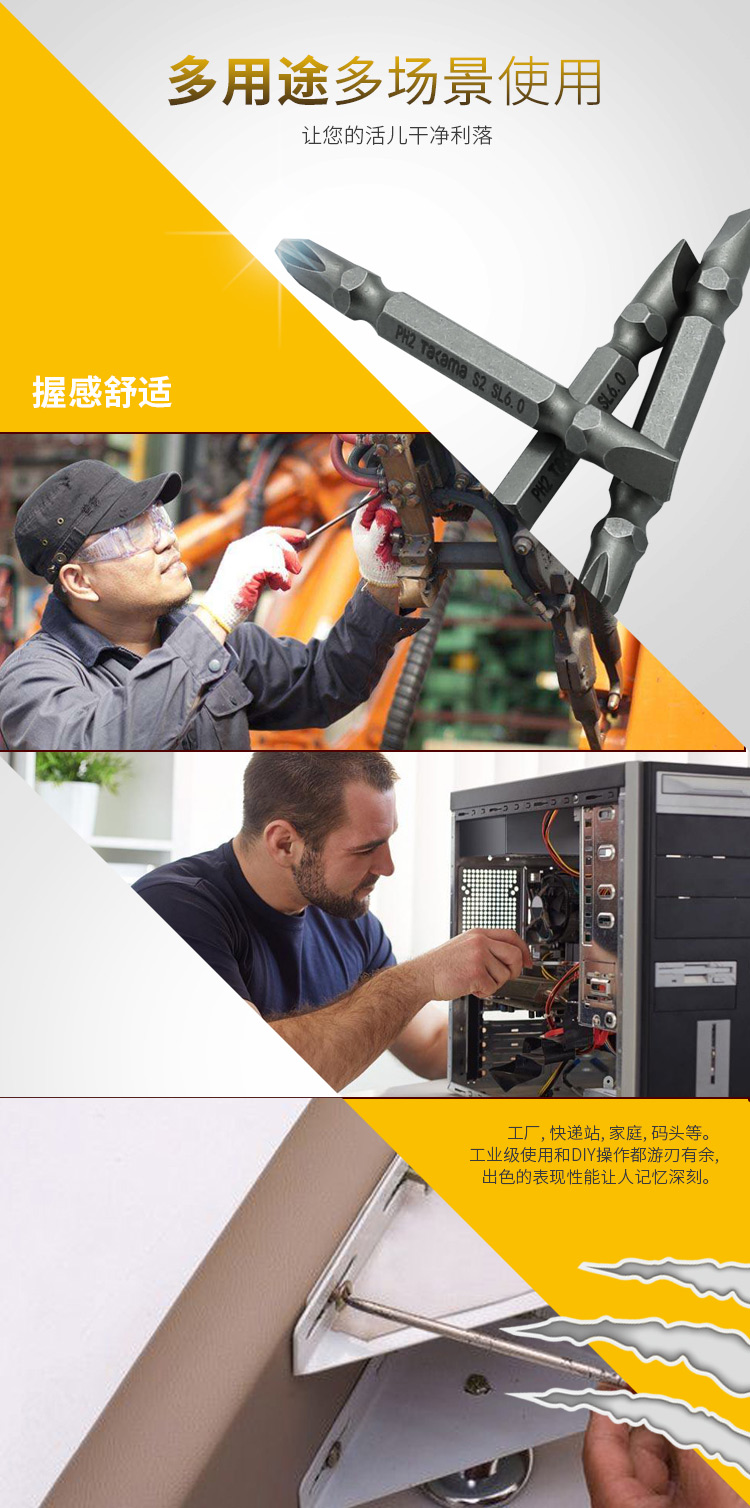 takama(高松)408460 双头十字一字螺丝批头套装10件套电动螺丝刀批头起子头旋具头S2带强磁PH2SL6*65
